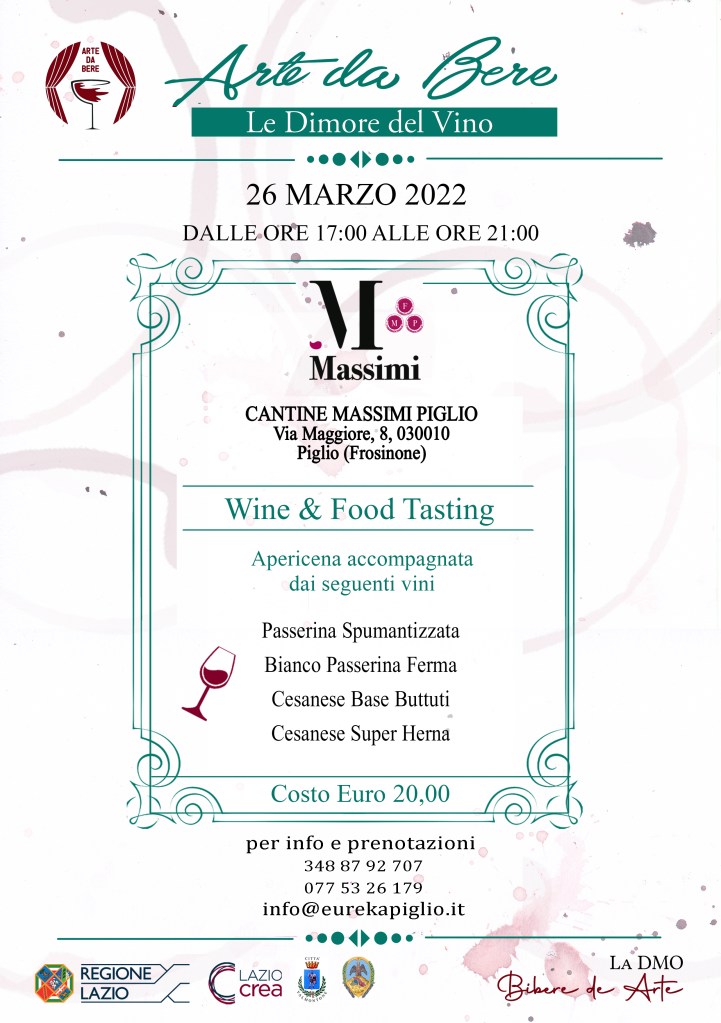 *Luogo dell’evento:* Piglio, presso Cantine Massimi via Maggiore 8