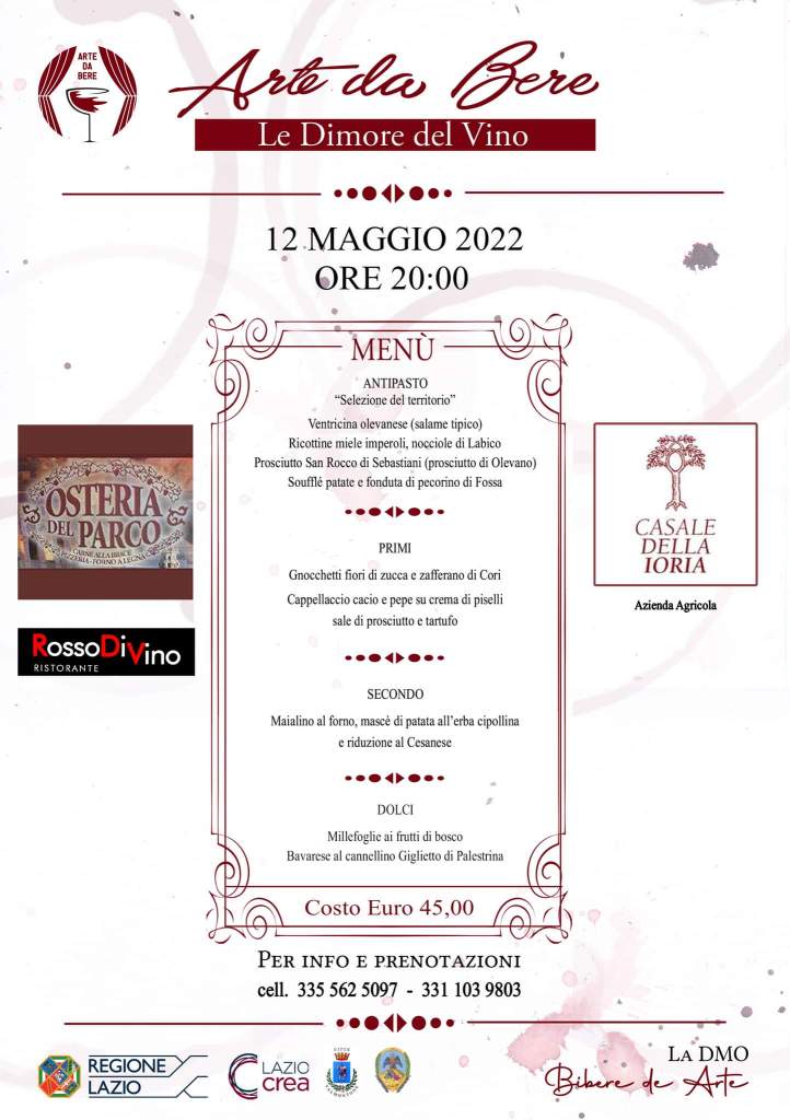 *Luogo dell’evento:* Valmontone, presso ristorante Osteria del Parco – Via della Pace, Snc, 00038 Valmontone RM