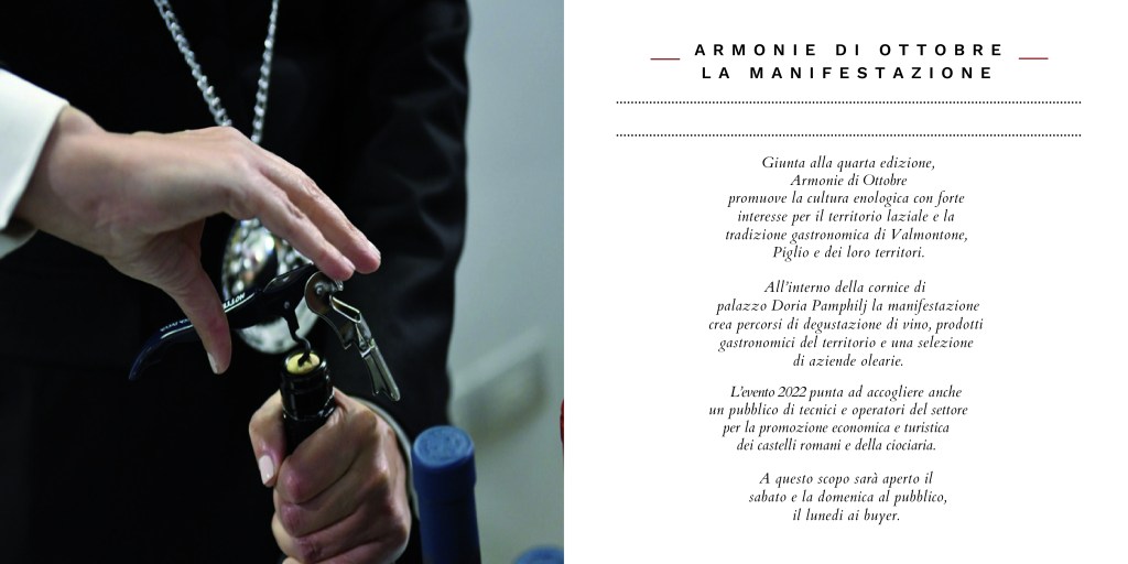 Dopo una pausa forzata per l’emergenza di COVID-19, Palazzo Doria Pamphilj (Valmontone) è lieto d’ospitare la 4^ edizione di “Armonie di ottobre“.